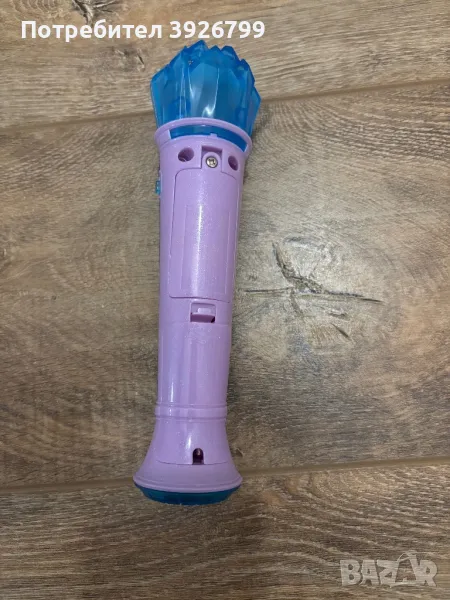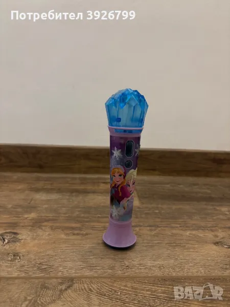 Музикален микрофон Елза и Ана от замръзналото кралство. Има различни мелодии и песни и светлинен ефект. Работи с батерии