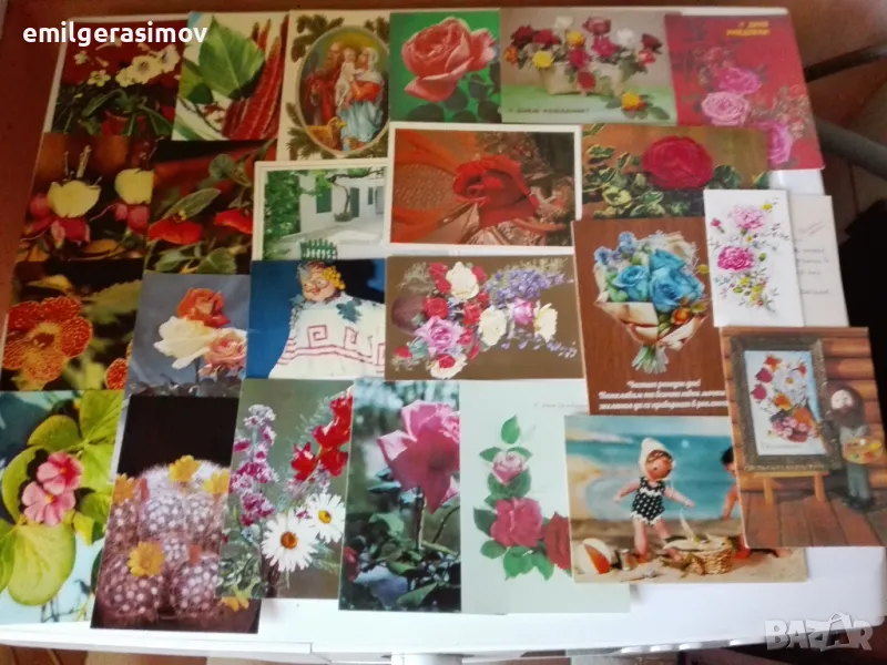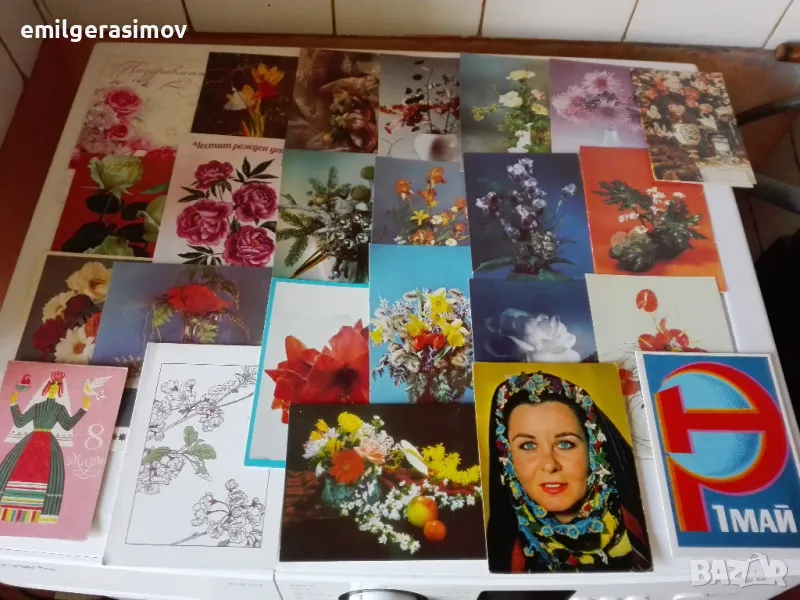 1. Стари пролетни и осмомартенски картички от 60 , 70 , 80 , 90-те години.Общо 90 броя в отлично състояние . Няма скъсани ,повредени и повтарящи се. Цена 12 евро.