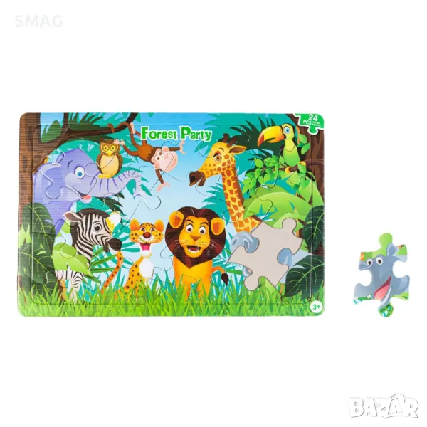 Детски пъзел с 24 големи части и картинка на животни от джунглата.
