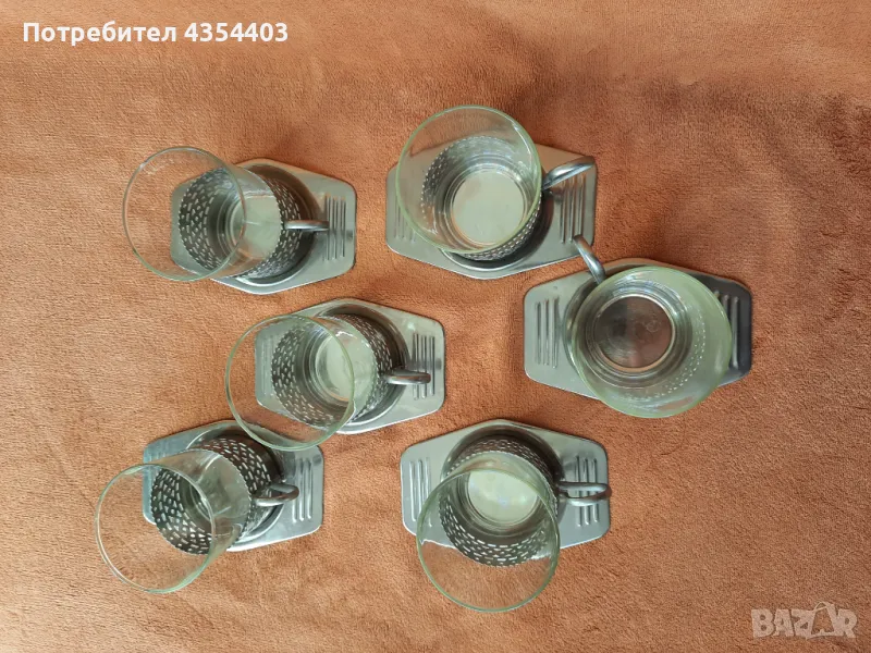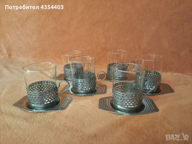 Предлагам комплект от 6 оригинални руски термочаши с метални подстакани и чинийки, от миналия век. Подходящи за любителите на ретро дизайна и колекционерите на винтидж изделия.