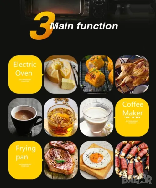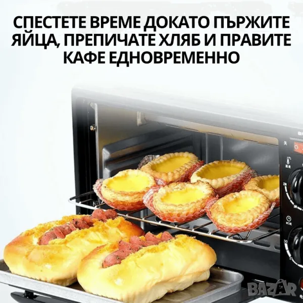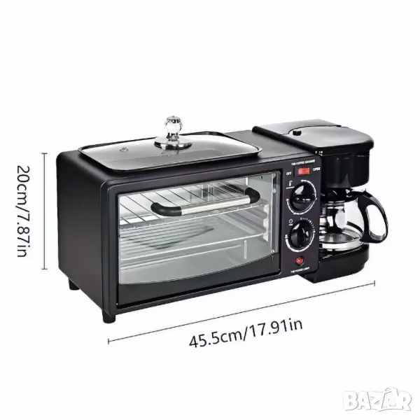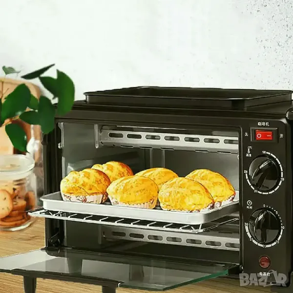 Най-добра цена! Печка, тостер и кафемашина, 3 в 1, 12 литра фурна, Плоча с незалепващо покритие