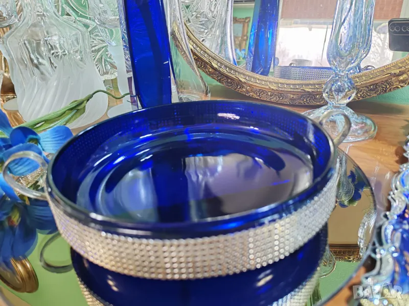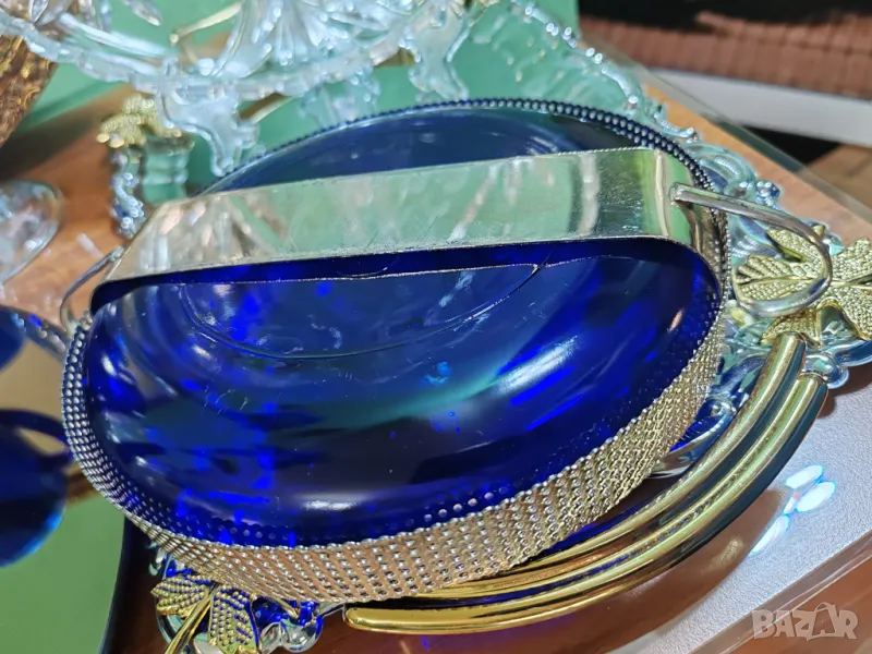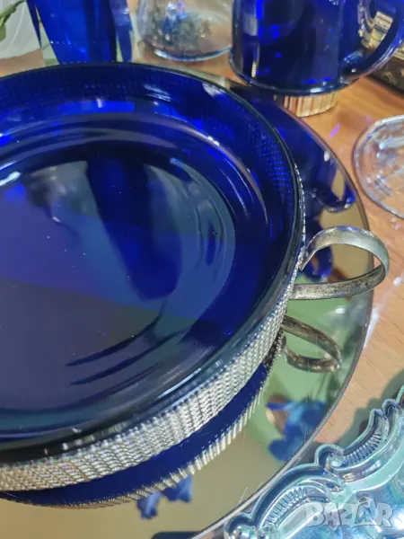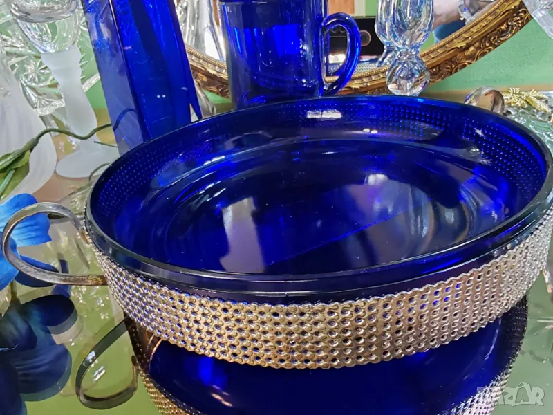 Фруктиера в изящeн кобалтово син цвят с метална посребрена стойка. → Обява 49030782