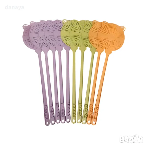 Практична мухобойка с дизайн на коте, идеална за бързо и лесно премахване на мухи и други летящи насекоми. Изработена от пластмаса, с дълга дръжка за удобен захват и широкa глава с ушички. Лека и издръжлива, подходяща за употреба у дома, в офиса, на двора или в градината.