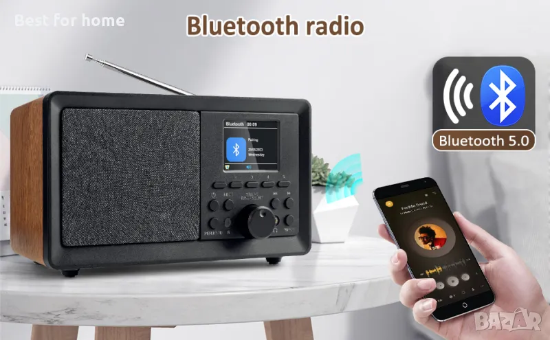 Можете да използвате радиото като Bluetooth плейър, да се свържете с Bluetooth на вашето електронно устройство и лесно да възпроизвеждате музика от колекцията на вашия мобилен телефон.