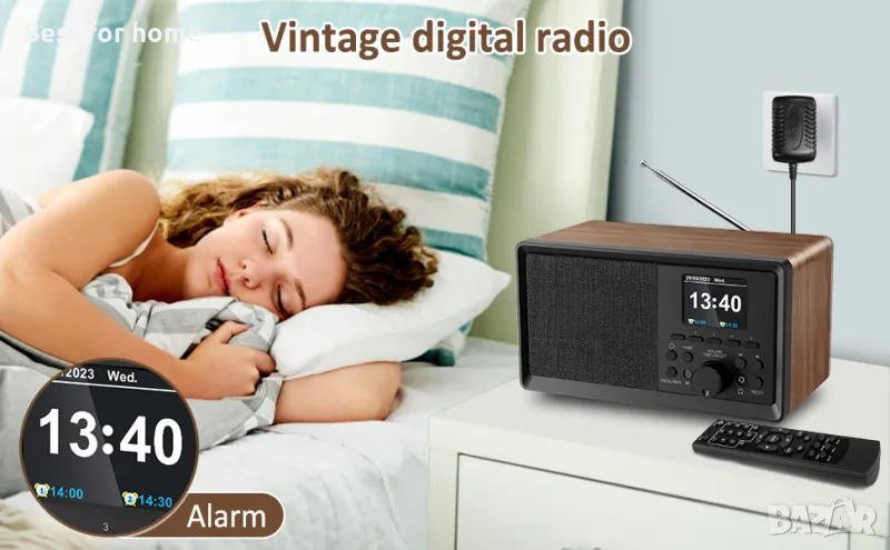 Двойна аларма: можете да настроите 2 будилника едновременно. Функция таймер за заспиване: Можете да зададете времето за заспиване на радиото в режим на готовност в 8 времеви нива (15 минути/30 минути/45 минути/60 минути/75 минути/90 минути/105 минути/120 минути). Поддръжка на многоезична работа на системата (6 езика). Поддръжка за коригиране на датата, тона на алармата, броя на звънците и много други настройки.