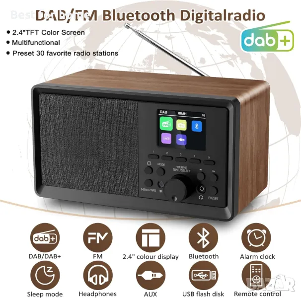 DAB+ и FM цифрово радио с Bluetooth от BIAOQINBO цветен дисплей