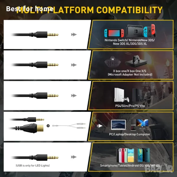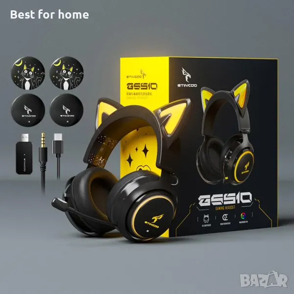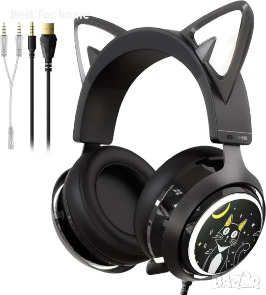 Котешките слушалки са безжично свързани с PS5, PS4, компютър. Кабелна съвместимост чрез 3,5 мм кабел с мобилни устройства PS5 контролер, PS4 контролер, Xbox Series X контролер, Xbox One контролер. За старата версия на контролера Xbox one е необходим адаптер на Microsoft, за да използвате тези слушалки Xbox one. (НЕ Е ВКЛЮЧЕНО)