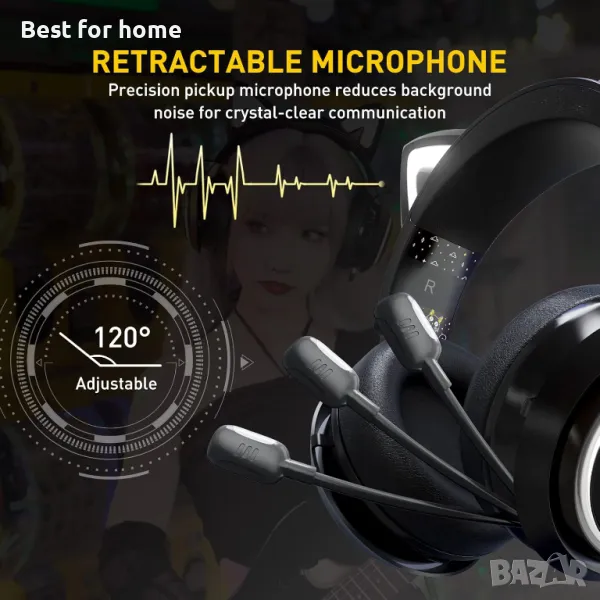 【Прибиращ се шумопотискащ микрофон】 Котешки слушалки GS510 с многопосочен чувствителен микрофон могат да предават висококачествена комуникация, да получават по-ясно качество на гласа и намален фонов шум за подобрено гласово изживяване.