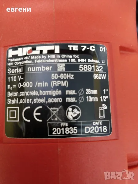 HILTI TE 7-C купено в Англия.Без прилежащите му инструменти.