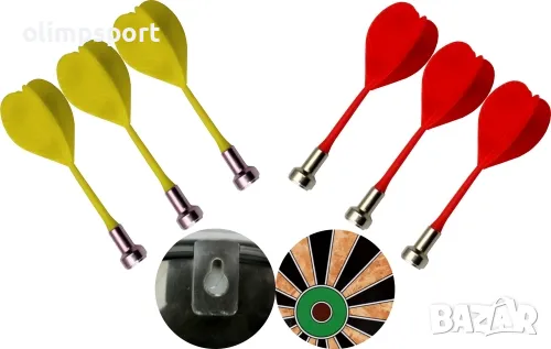 Магнитен дартс MAX, 14.5 инча (36.8 см), Комплект с 6 стрели. Подходящ за първите стъпки на децата в играта. Комплектът включва 6 стрели, в два цвята по 3 броя. Магнитният дартс е предпочитан за игра, защото е безопасен и предпазва от наранявания. Диаметър на мишената - 14.5 инча (36.8 см). Дебелина мишена - 1.5 см. Дължина стрела - 9 см. Тегло за комплект - 770 г. Размери опаковка - 37х37х2 см. Материал - PVC, метал.
