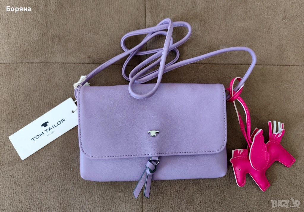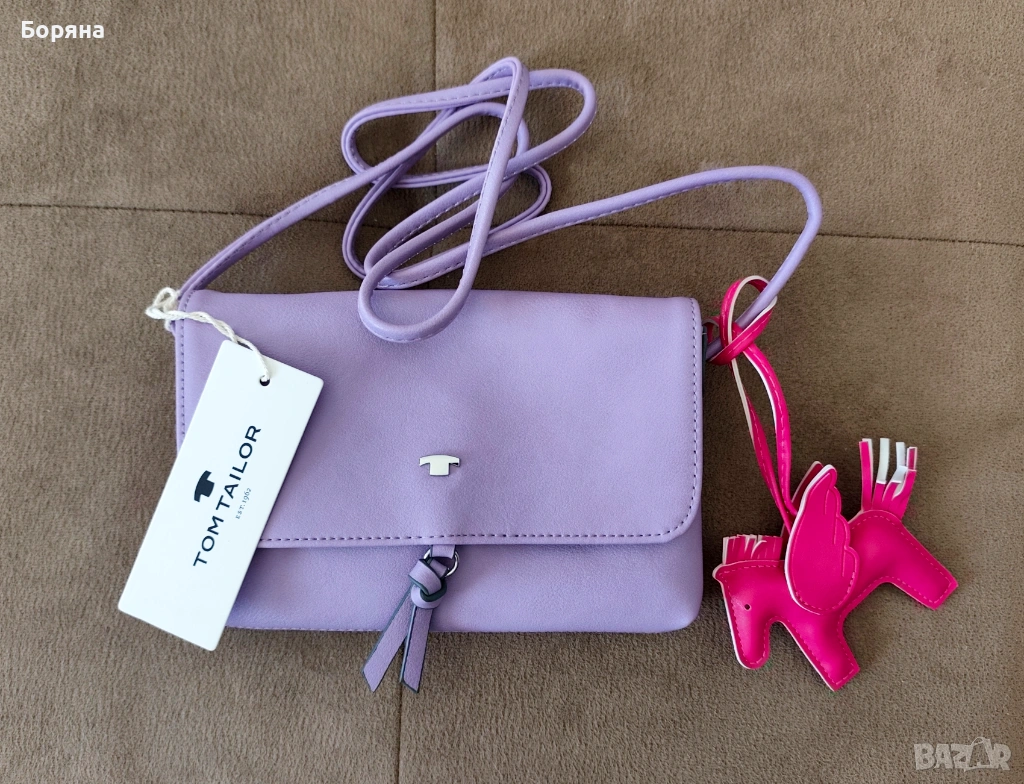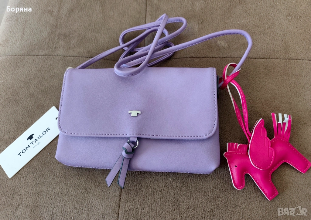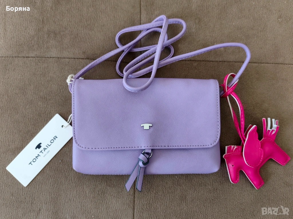 Tom Tailor нова малка лилава чанта с висулка кон
