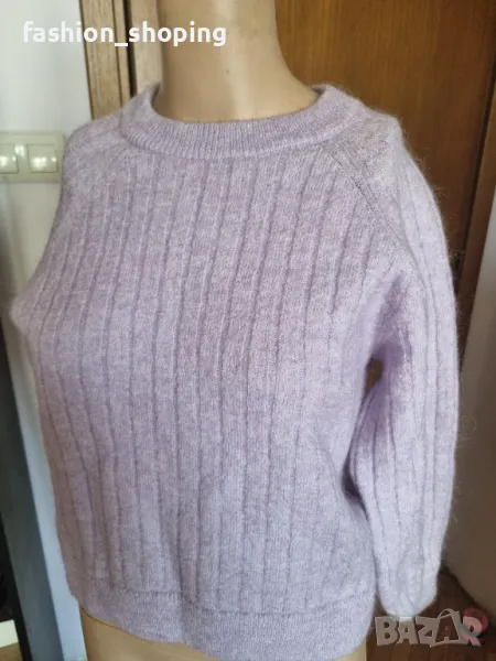Красив, топъл пуловер в много нежен, романтичен цвят бледолилаво. Снимките не могат да уловят напълно истинската наистеност на цвета. Пуловерът е на скандинавски бранд, известен с използването на естествени материи, които гарантират топлината: вълна и мохер. Мохерът придава мекотата на плетивото.