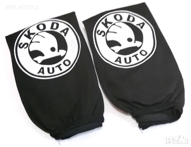 декоративни автомобилни калъфки за наглавници черни и бели на цвят щамповани / подходящи за всички видове мпс автомобили леки коли камиони автобуси бусове бус автобус лека кола автомобил / захват на еластична основа / универсални разтегателни / перящи се / нови неизползвани / novi / за / za / skoda шкода
