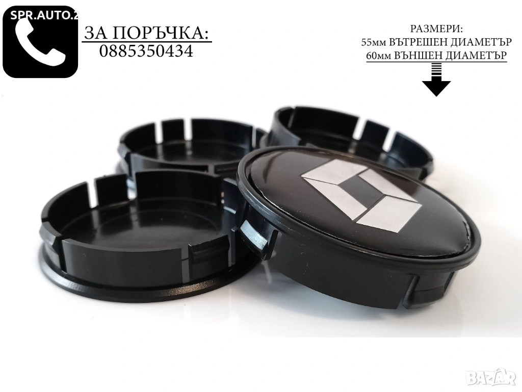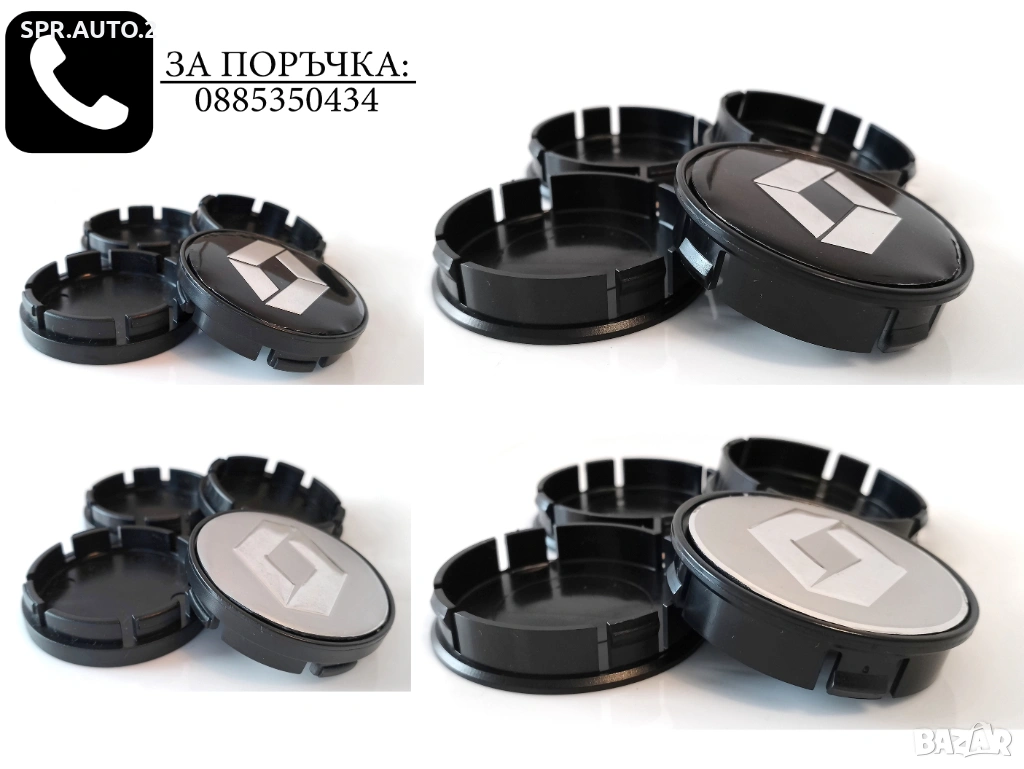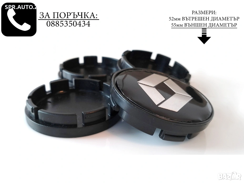 Капачки за джанти за Renault Рено / размери от 52мм 55мм 60мм / нови черни декоративни тапи