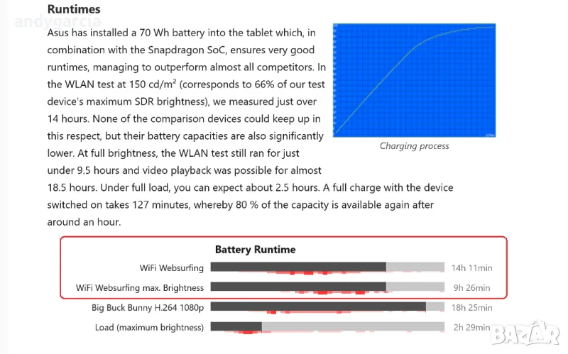 - батерия с живот от 10-14 часа, 70 WHrs, 3S1P, 3-cell Li-ion Battery...много 15.6 и дори 17.3 инча лаптопи са с по-малка такава.