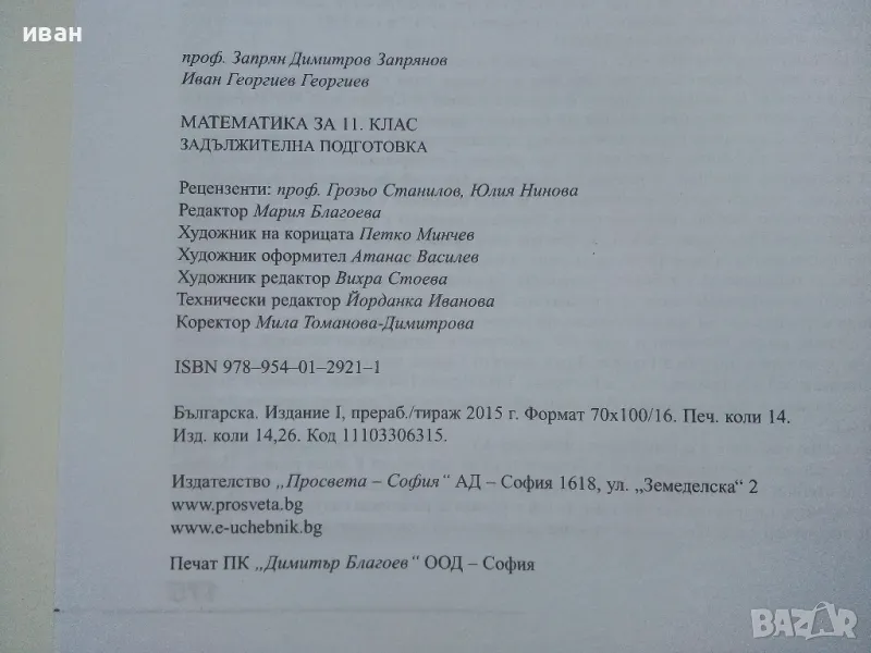 Математика за 11 клас. задължителна подготовка - З.Запрянов,И.Георгиев - 2015г. → Обява 49035142