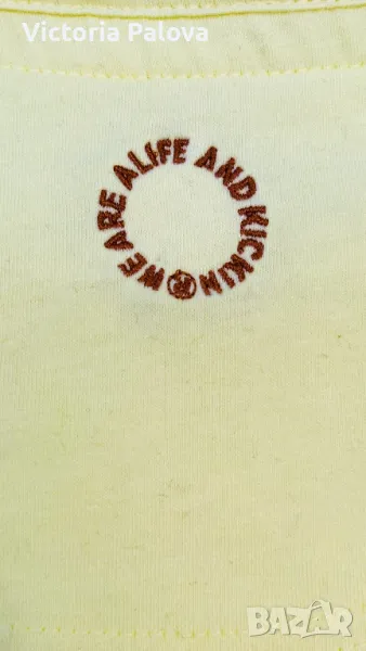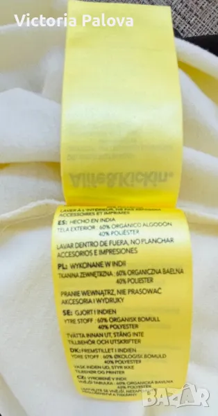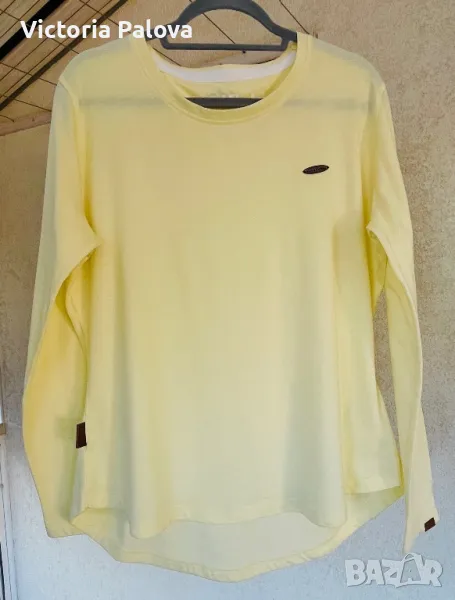Много особена различна блуза, реалната ѝ цена е 40 евро, особеността ѝ е в материята - изцяло екологична, мека като пух. Цветът е също рядко срещан - светъл лимонов, на етикета сочат цвят масло. Рамо - 46см, ГО - 58см, дължина отпред - 66см, отзад - 71см, ръкав - 62см, закръглен долен край.