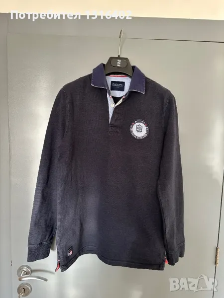 Мъжка блуза с яка “Christian Berg”, тъмно синя, размер S/M, 100% памук, ширина под мишници 48см, дължина 67см, ръкав 63см.