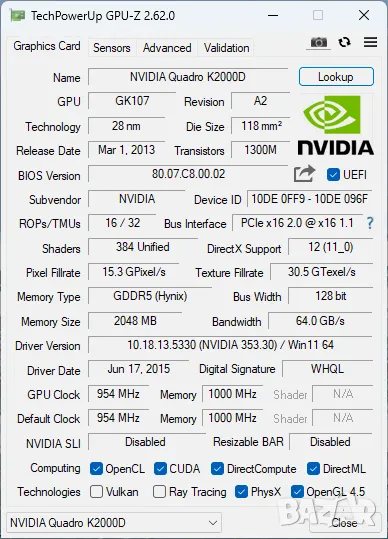 Chipset/GPU Model: NVidia Quadro K2000D/GK107