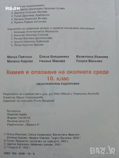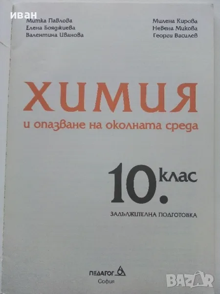 Химия и опазване на околната среда 10 клас.- М.Павлова,Е.Бояджиева,В.Иванова,М.Кирова,Н.Микова,Г.Василев - 2002г.