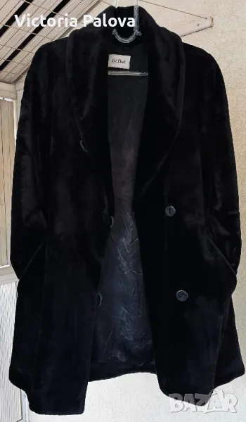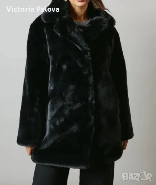 Прекрасна модерна шуба с блестящ косъм тип плюш, супер удобна кройка и стилна визия. Кройката е много комплиментарна за всички фигури - кокон, реглан ръкав, ГО - 63см, дължина - 89см, надолу се стеснява и долният край е широк 58 см едностранно, ръкав от мишница - 38см, в раменете са леки подплънки.