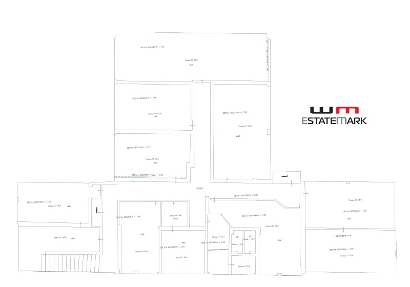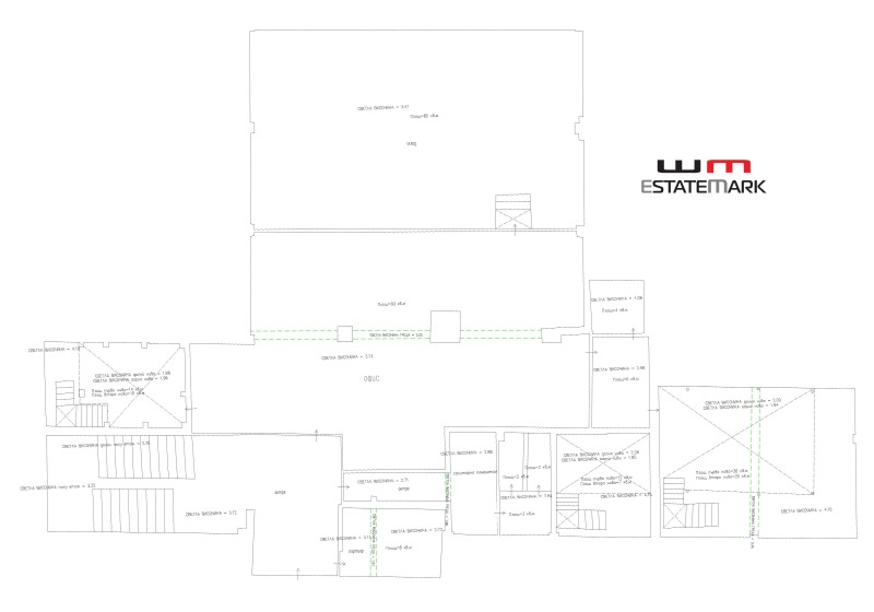 Светъл сутерен 800 кв.м.с английски двор с втори отделен вход и светла височина около 3,20 метра, различни по големина помещения /виж схемата /.