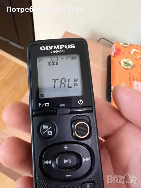 диктофон с 4 GB памет. Работи с две ААА батерии (не са