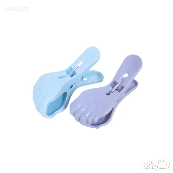 Тези големи щипки за пране с форма на краче са перфектното решение за всяко домакинство. Изработени от пластмаса, те са изключително здрави и подходящи за закрепване на олекотени завивки, чаршафи и дори хавлии за шезлонги. Многоцветните щипки (синьо, сиво, бяло, оранжево) ще добавят свежест към вашето пране. С размер от 10×3 см, те са идеални за всякакви нужди, като осигуряват стабилност и сигурност при всяко използване.