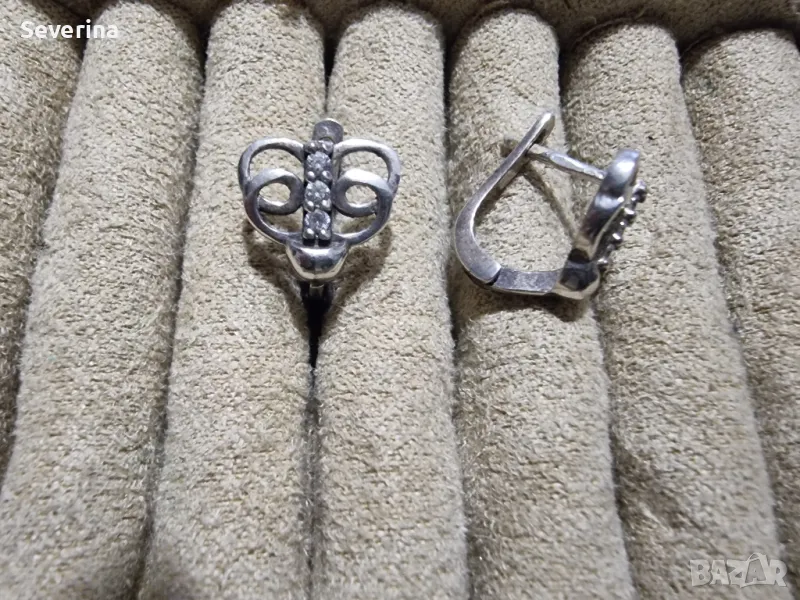 Супер нежни обеци с пеперуди, с цирконий, английско закопчаване,носени броени пъти, неразличими от нови!