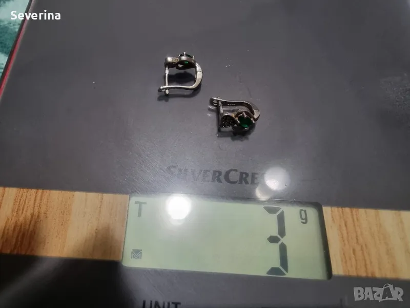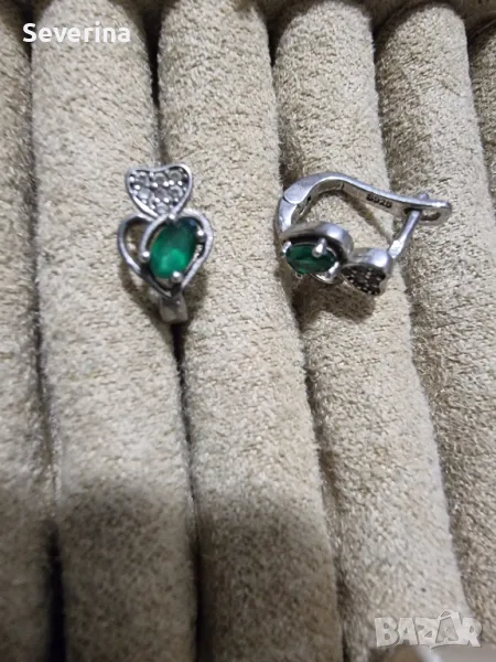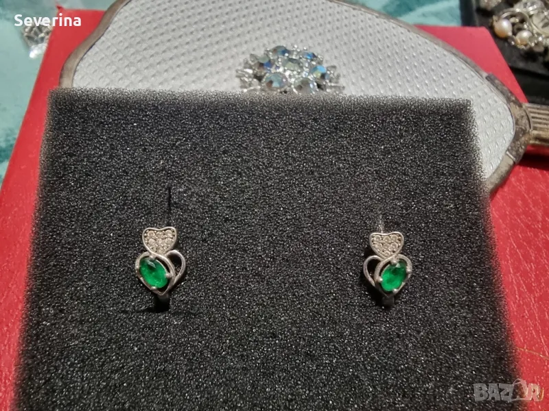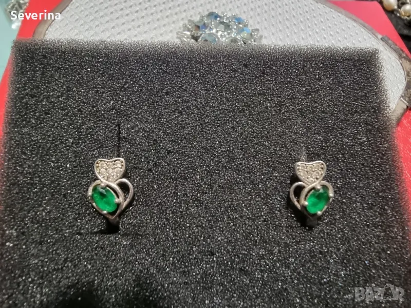 Сребърни,детски обеци със зелени камъни → Обява 49039662