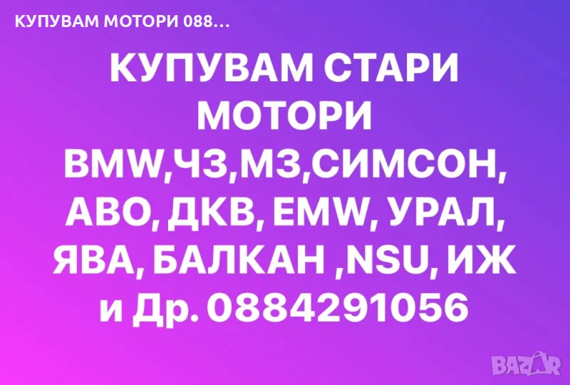 Купувам Мотори 0884291056, снимка 1 - Мотоциклети и мототехника - 49040188 Купувам Мотори 0884291056, снимка 2 - Мотоциклети и мототехника - 49040188 Купувам Мотори 0884291056, снимка 3 - Мотоциклети и мототехника - 49040188 Купувам Мотори 0884291056, снимка 4 - Мотоциклети и мототехника - 49040188 1/4