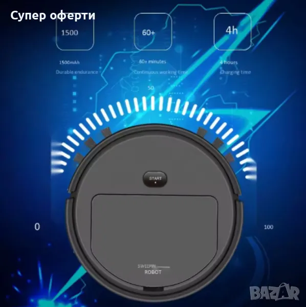 Интелигентна прахосмукачка робот 3в1 две четки и моп за почистване на домакинство