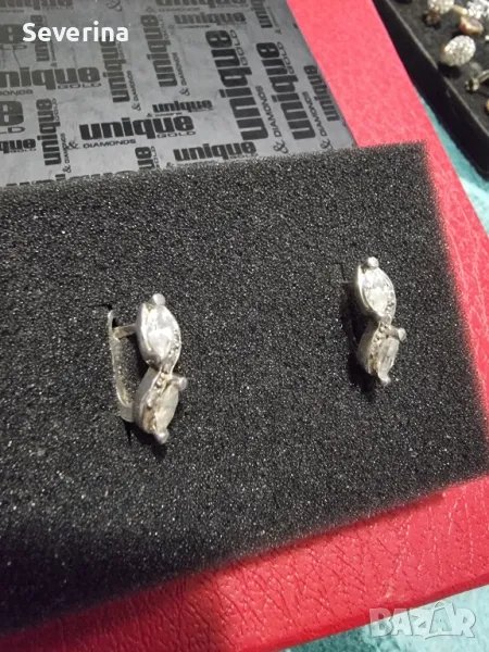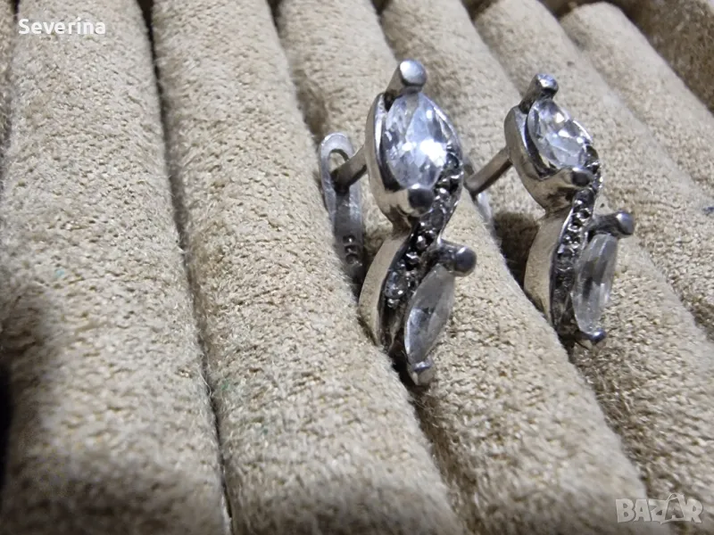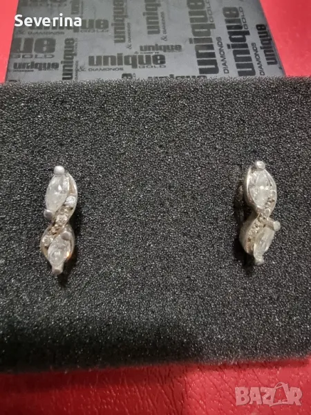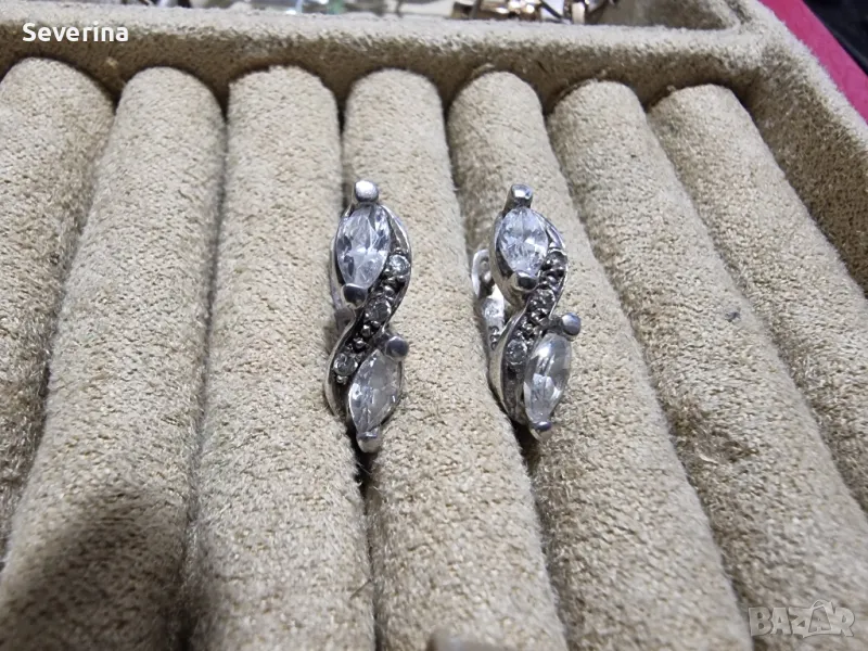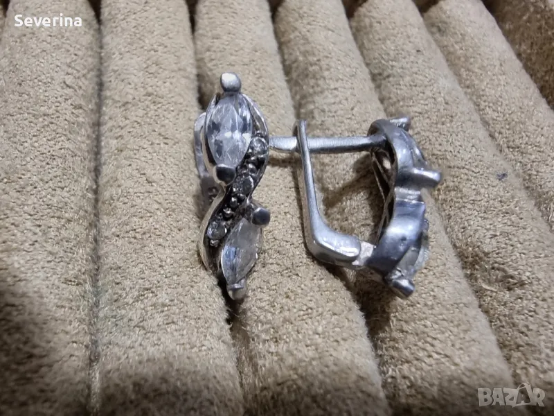 Сребърни, неразличими от нови, много интересен модел обеци, с големи и малки цирконий, английско закопчаване!