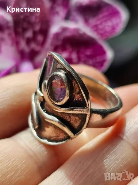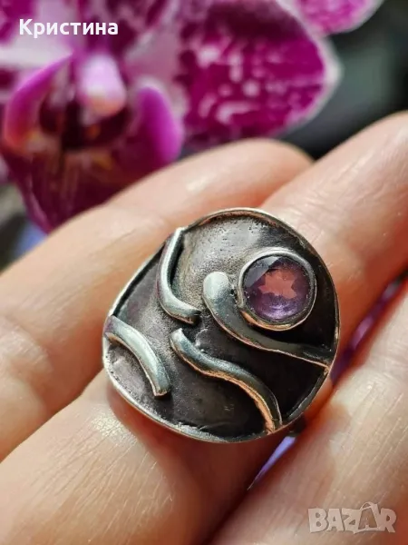 Красив сребърен пръстен с Аметист → Обява 49040929