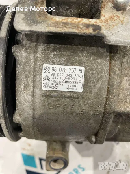 9802875780 9801764380 447150-5201 5SEL12C04B05995 компресор за климатик от Citroen Berlingo 1.6 BlueHDI 75 кс. двигател BHW, 2018г., 5 ск., 105 000 км., euro 6B, Ситроен Берлинго, engine BHW на части в автоморга Delev Motors, между с. Каменар и с. Куманово гр. Варна.