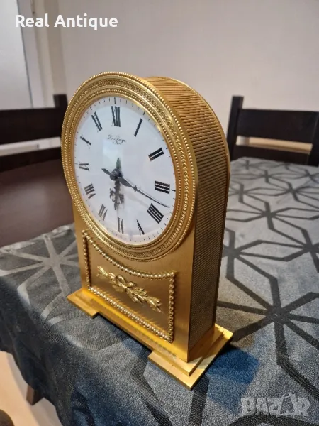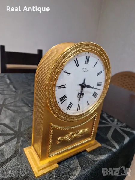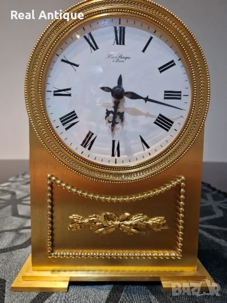 Рядък антикварен колекционерски бронзов каминен настолен френски механичен часовник → Обява 49043364