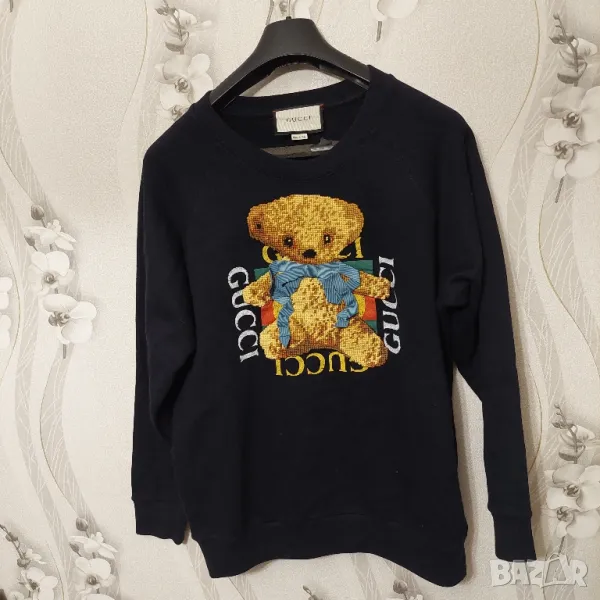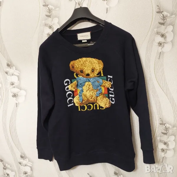 Дамска памучна блуза - Gucci Felted Jersey Sweatshirt With Teddy Bear