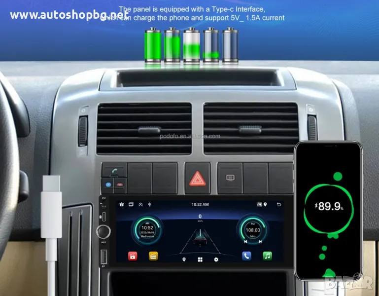13. Многофункционален USB & TYPE-C порт : позволява ви да свържете устройствата си и да се наслаждавате на любимата си музика, видеоклипове и снимки. Можете също така да зареждате устройствата си, като използвате портовете, докато шофирате. Портовете поддържат различни формати и са лесни за използване.