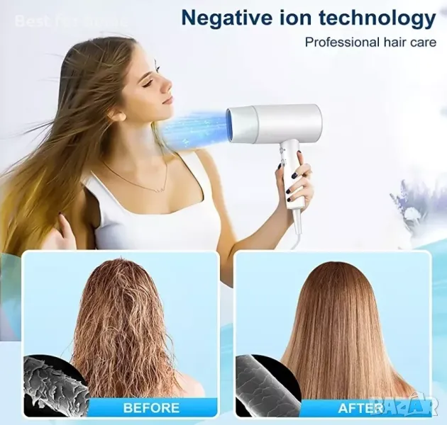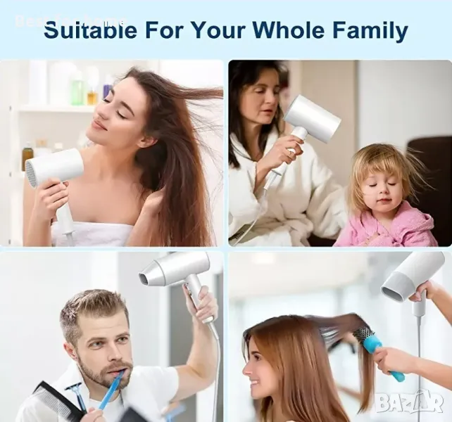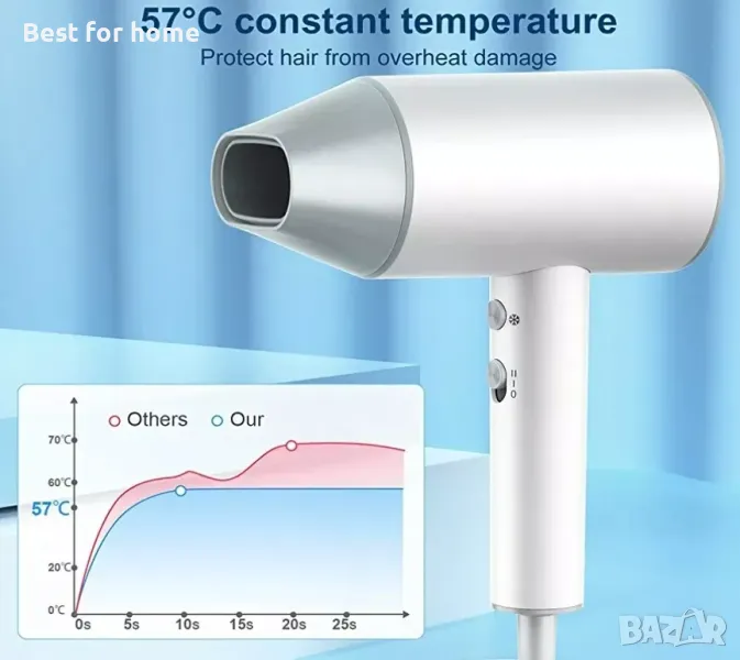 Професионална йонна грижа за косата 💨 С технологията с отрицателни йони, сешоарите за жени поддържат ниска радиация и освобождават милиони овлажняващи отрицателни йони, за да поддържат естествената влажност на косата. Дизайнът с постоянна температура 57°C ви кара да се наслаждавате на сухота и равномерност по всяко време. Откажете се от къдренето на косата и имайте здрава коса от сега!