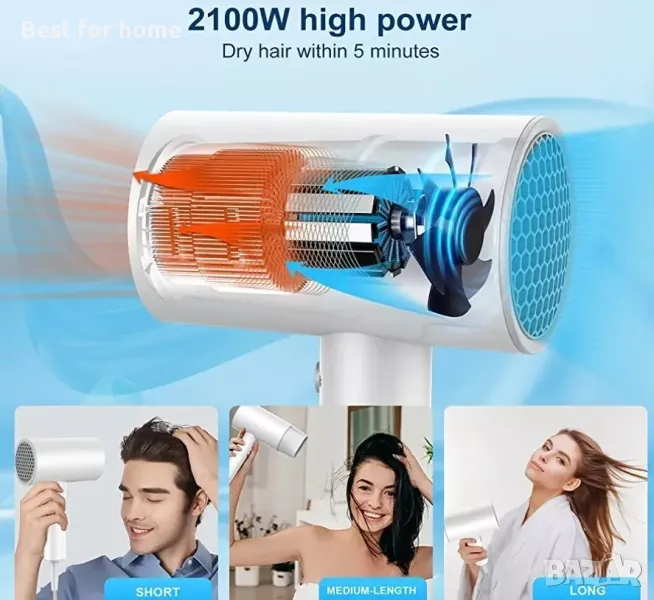 Мощно бързо изсъхване и интелигентно намаляване на шума💨 Оборудван с усъвършенстван мощен двигател с двоен поток от 2100 W. нисък шум, по-стабилна работа и лесно изсушаване на косата за кратко време. Сешоарът за пътуване има защита от прегряване и ниско електромагнитно поле. Структурата с ниска магнитна вълна спестява енергия, има ниско излъчване в сравнение с подобен сешоар. В допълнение, интелигентният дизайн за намаляване на шума го прави подходящ за използване от бременни и деца.