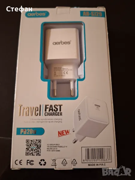 Бързо зарядно за телефон, таблет и други. Само зарядно, без кабел.