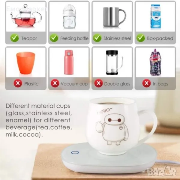 Благодарение на вградения нагревател, напитките ви като кафе, чай и шоколад винаги ще бъдат топли.