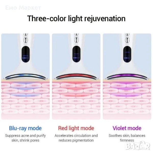 Режим на чиста и светла кожа, режим на горещ компрес с постоянна температура, режим: