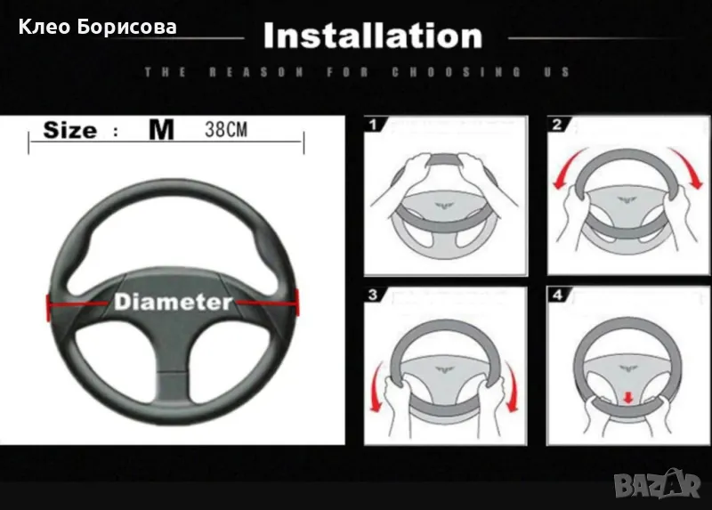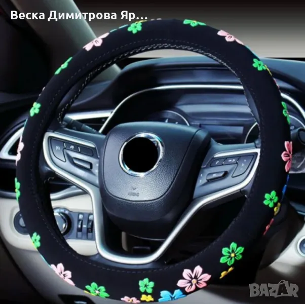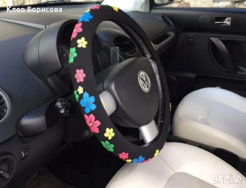 Материал: Кадифе и висококачествени синтетични нишки;Диаметър: 38 см (универсален размер);Цвят: Черно с апликации цветя;Тегло: Около 300 г;Устойчивост: Издръжлив на износване и замърсяване;Приложение: Подходящ за повечето автомобили с волан 38 см.
