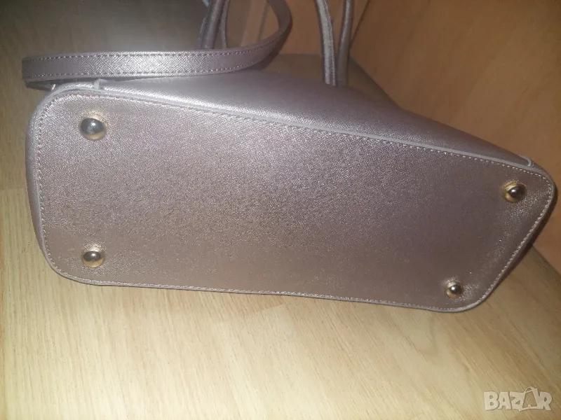 Дамска златиста чанта,естествена кожа има и дълга дръжка