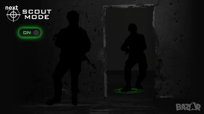 Активирайте Scout Mode, за да си осигурите ясно тактическо предимство! Тази изпитана и тествана технология подобрява важни звукови сигнали в играта - като стъпки и звуци от смяна на оръжия - позволявайки ви бързо и точно да определите местоположението на вашите опоненти, преди те да определят вашето!