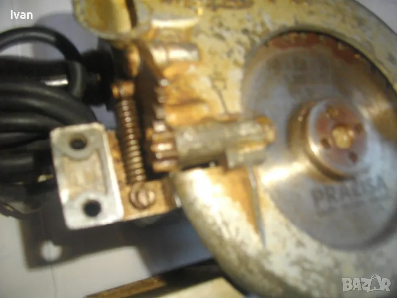 На ръчният циркуляр е поставен оригинален немски режещ диск за дърво с видиеви/видирани пластини на зъбите, които нямат никаво износване. Диска е марка PRAZISA и е почти нов. Размер вписан на диска ф105ф2р8х20мм.
