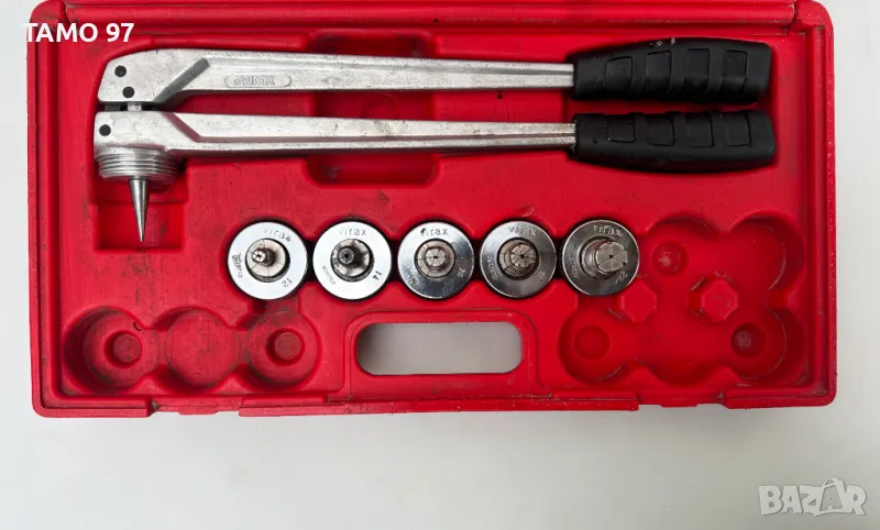 Продавам професионален експандер на Виракс за тръби, оригинално френско производство, внос от Франция. Продава се така както си е на снимките пълен комплект с 5 броя глави 12/14/16/18/22 мм и оригиналнен куфар за транспортиране. Пращаме с опция преглед и тест с куриерска фирма еконт може и лично предаване за гр. Шумен.