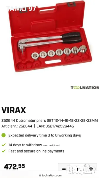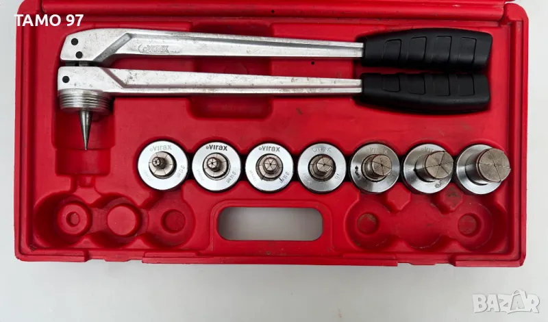 Продавам професионален експандер на Виракс за тръби, оригинално френско производство, внос от Франция. Продава се така както си е на снимките пълен комплект с 7 броя глави 12/14/16/18/22/28/32 мм и оригиналнен куфар за транспортиране. Пращаме с опция преглед и тест с куриерска фирма еконт може и лично предаване за гр. Шумен.