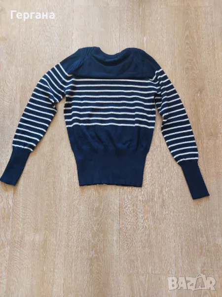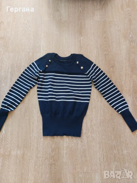 Дамска блуза от тънко плетиво в син цвят, чисто нова. Блузата изглежда и стои по същия начин, както на манекена.